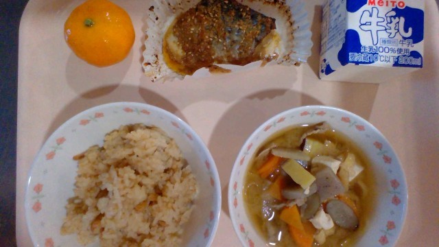・ツナごはん ・さばのピリ辛焼き ・豚汁 ・冷凍みかん