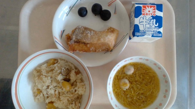 今日の給食では、菊の花びらを浮かべた「菊花汁」にしてみました。季節の風情を少しは感じることができたでしょうか。