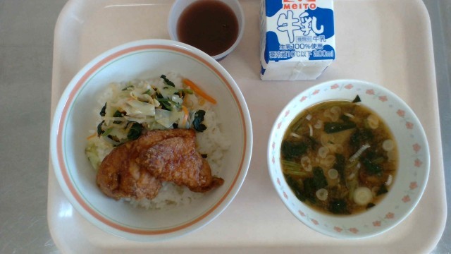 嬬恋丼はキャベツの名産地である群馬県の嬬恋村をイメージしたどんぶりです。このどんぶりは、ワンダフル給食の時に服部栄養専門学校の先生が考えたオリジナルのどんぶりです。キャベツたっぷりのナムルと甘辛いから揚げを一緒にすることで食がすすみます。