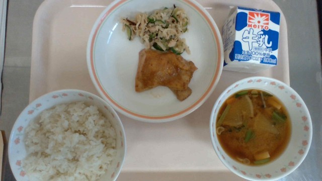 ・麦ごはん ・鶏肉のみそだれ焼き ・切干大根のサラダ ・かぼちゃの味噌汁