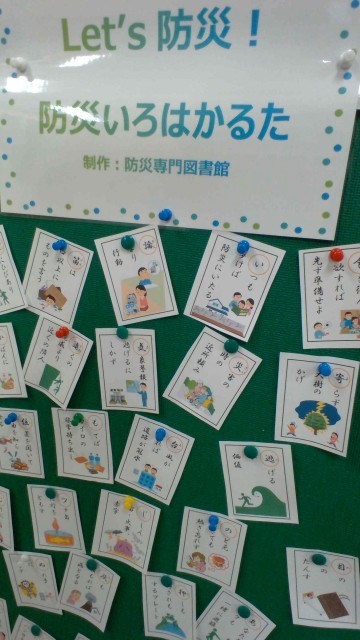 今日の切干大根のサラダは、図書室にある「どんなときも レシピ集」から取り入れました。また、防災専門図書館が作成した「防災かるた」も掲示しています。防災のことが気になった方は、ぜひ図書室に足を運んでみてください。