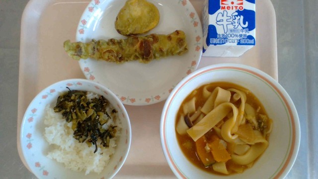 ・ごはん ・ちくわの南部茶揚げ ・鳴沢菜炒め ・甲州ほうとう