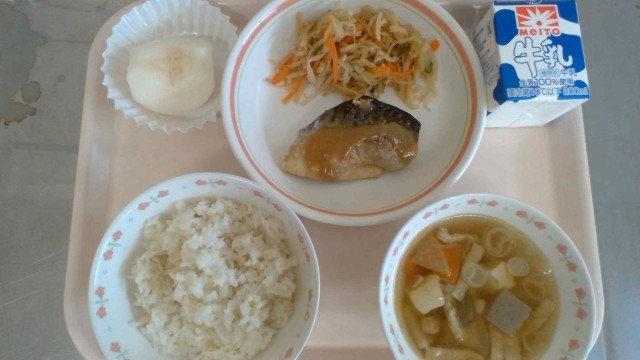 ・雑穀ご飯 ・サバの味噌煮 ・切干大根のごま酢和え ・けんちん汁 ・梨