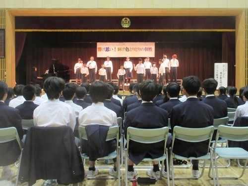 どの学級も素晴らしい合唱でした。最優秀賞を決めましたが、差はほとんどありませんでした。3年生の全体合唱は秀逸でした。さすがです。吹奏楽部の演奏はバラエティに富み、とても楽しく聴きました。