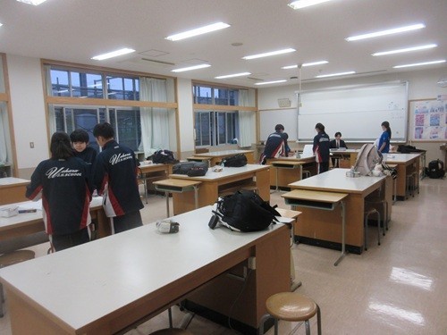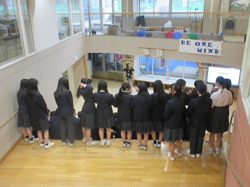 次は区陸上競技会です。学習発表会が終わったので区陸に集中できます。被服室では応援団がグッズ作りです。大階段では3年生が卒業アルバム用のクラス写真を撮っていました。