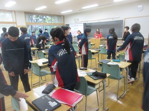 2年生で住友生命によるコミュニケーションの授業を行いました。挨拶についても学びました。もう1枚は昨日のゲストの塚原直貴さん(北京オリンピック400mリレー銀メダル)です。
