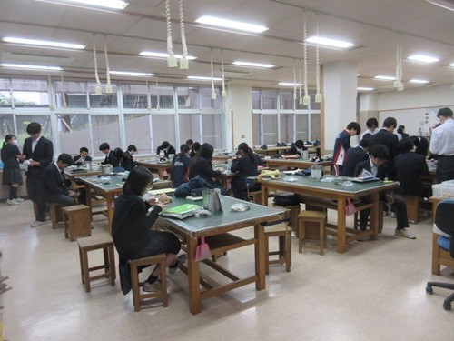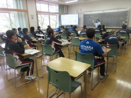 サッカー、ポッキー、チンアナゴなどの日。3年2組は美術で篆刻(てんこく)、はんこを作っていました。3年1組は技術で金属加工、キーホルダー作りです。あと1年2組の社会。明日から3年生は中間考査です。頑張れ。