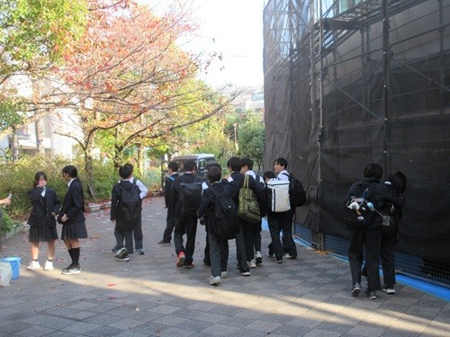 英語と社会と理科の試験がありました。明星学級も中間考査です。試験が終わって、楽しそうに帰っていきました。木々の葉も色付いています。