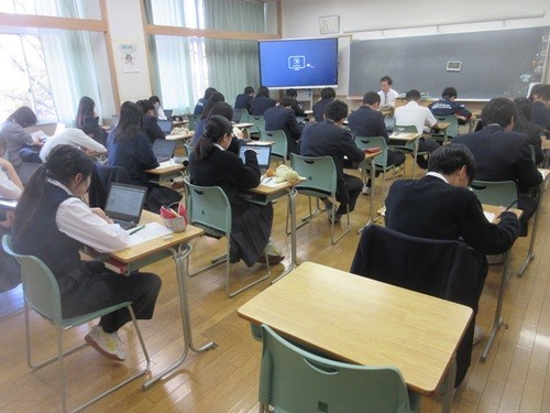 本校でオンラインによる全国学力学習状況調査の試行を3年生で行いました。国語です。トラブルなくできました。明星学級の生徒がテラスをきれいにしていました。明日、うえとみふれあいコンサートがあります。ぜひ。