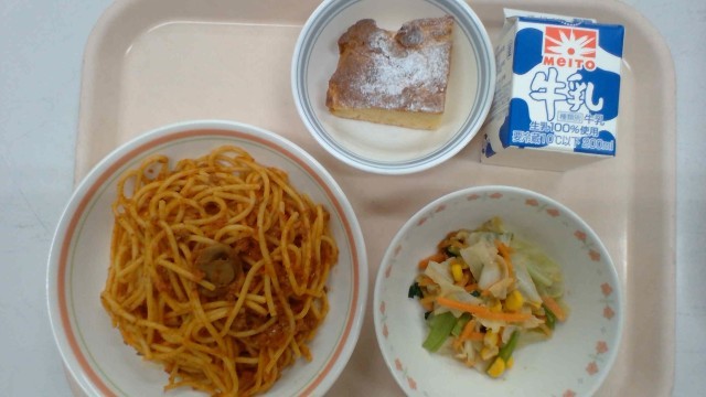 ・ボロネーゼ ・コーンのごまドレサラダ ・りんごのケーキ