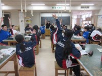 全校朝会で区陸上競技会の表彰をしました。時間がなかったのでヒーローインタビューは一人だけ。2年生は来週の調理実習の準備。明星学級は代々木警察署の方を招いての交通安全教室です。