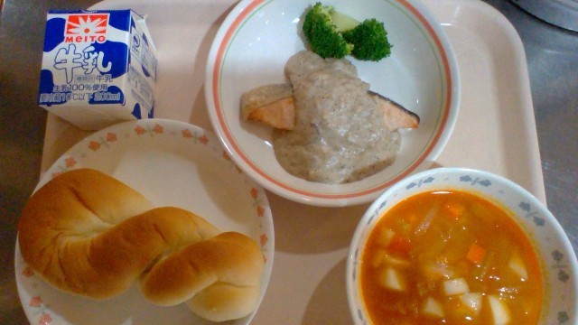 ・ミルクパン ・鮭ステーキクリームソース ・ABCスープ