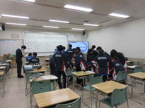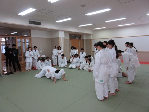 今年2回目の学校視察。全国の先生や教育委員会の方が、探究型の社会科の授業を中心に見に来ました。写真は2年1組です。2年3組の数学も探究のようでした。1年1組は上四方固め。うぐっ。