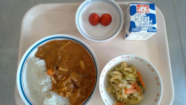 今日の給食でも、サワークリームではなく、生クリームを使って食べやすくしました。