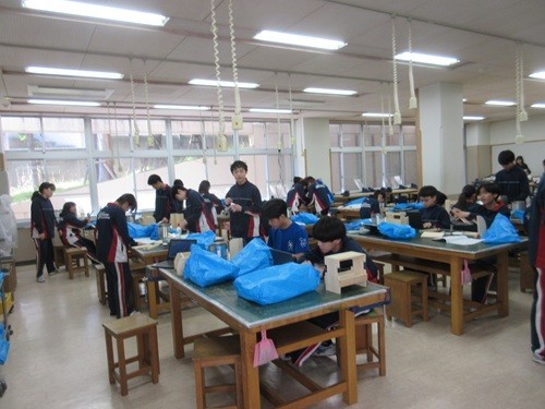 TBSが作成したビデオを使っての実証授業を社会科で行いました。教師がキャスターとしてビデオに登場しました。3年生は卒業式の通し練習、証書授与もしっかりできました。1年2組の技術の木工作、完成です。