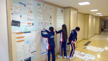 明日から始まる学習発表会の展示準備を行っています。みんなで協力して、レイアウトを考えています。