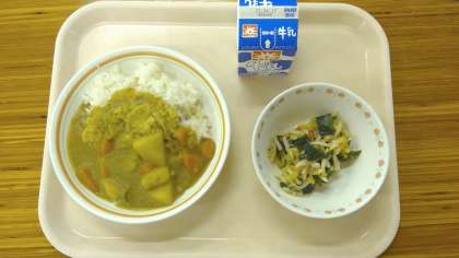 カレーライスは、こしょう、グローブ、ナツメグなどのスパイスを加えています。どのクラスもとてもよく食べていました。