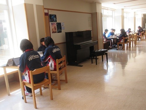 本校は広い廊下でも学べます。音楽ではそれぞれがつくった旋律を聞き合っていました。社会では江戸時代が長く続いた理由を話し合っていました。おまけは1年生のダンス練習。楽しそうでした。