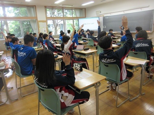 2年生が住友生命の方をゲストティーチャーに迎え、キャリアプランについて学びました。幸せとは何かなど考えていました。午前中は全国校長会。文科省の説明を聞きました。