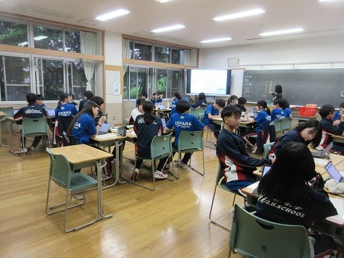 振替休日の3年生の教室も使い、6か所に別れて1年生が事前学習の発表、教科教室型の本校ならではの使い方です。ナイスアイデア。内容も充実していました。2年生は「マイ探究」の最初の段階です。