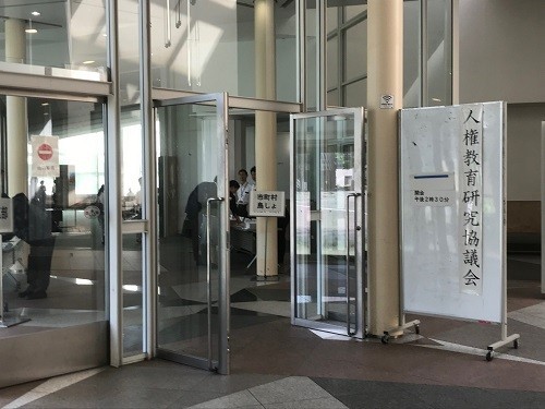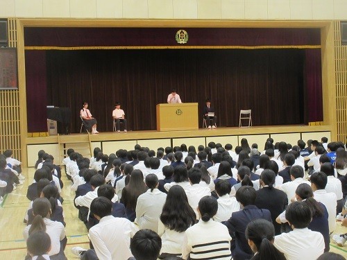 3年3組が教室と廊下でグループ学習、これがラーニングコモンズです。生徒朝会は各学年からの発表、明星学級代表も立派に発表しました。午後は人権教育研究協議会で、またオリセンへ。