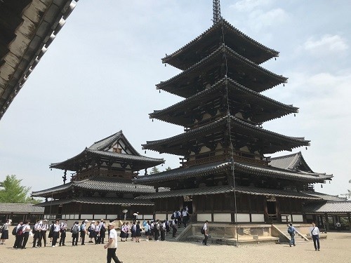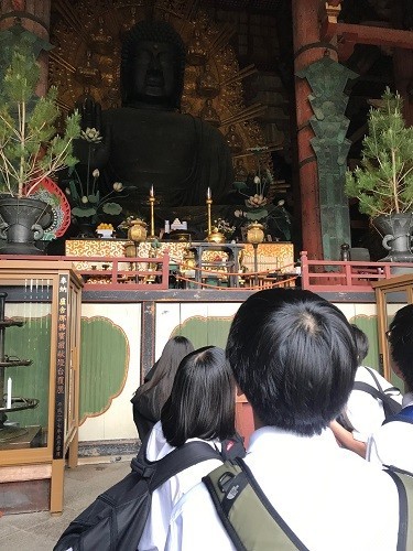3年生と奈良に来ています。法隆寺を見学した後、薬師寺でお坊さんのお話を聞き、東大寺で大仏をみました。法隆寺も薬師寺もすいていました。
