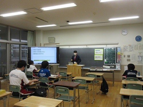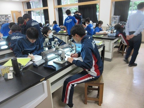 明星学級の国語、1年3組の英語、3年3組の理科をみました。明星学級はその知識量に驚きました。英語は小学校英語との連続性を感じました。理科は花粉の観察です。どの教室もよい雰囲気でした。