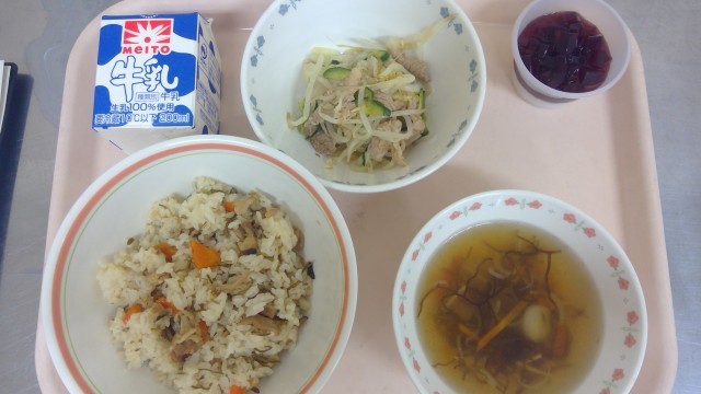 ・ししじゅうしい ・焼肉サラダ ・もずくスープ ・あじさいゼリー