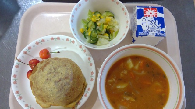 ・ビスキュイパン ・ビーンズシチュー ・コーンサラダ ・さくらんぼ