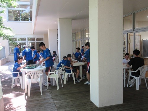 今日は2年生は涼しい図書室で学習です。体力を回復してほしいと思います。3年生も校庭と体育館半々で練習。今日のオープンテラスはお客さんが大勢来ていました。クールダウン&リラックス。