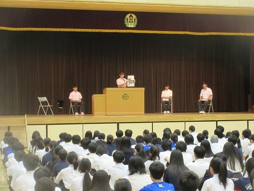 令和7年7月7日、777のラッキー日かな。生徒朝会は今までの反省、「知」で表したのは1年生代表生徒。家庭科では裁縫、音楽ではギターを弾いていました。2年生で看護師による性教育の授業を行いました。