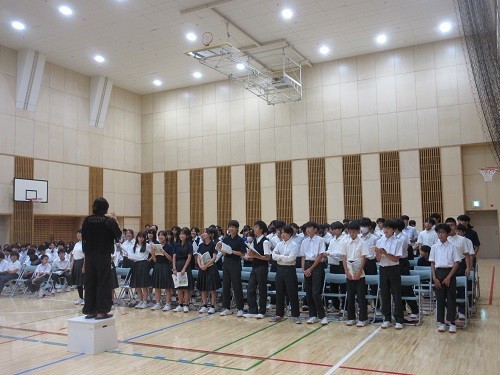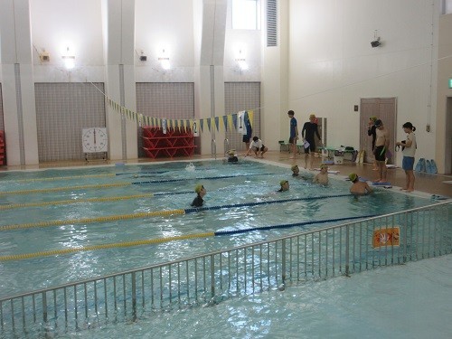 作曲家の山崎朋子先生による合唱指導を学年ごとに行いました。神指導でぐんぐん上達しました。本校のプールは室内なので気温が高くても安心です。