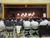 生徒朝会でシリコンバレーとフィンランド派遣研修の報告会をしました。3人とも多く...