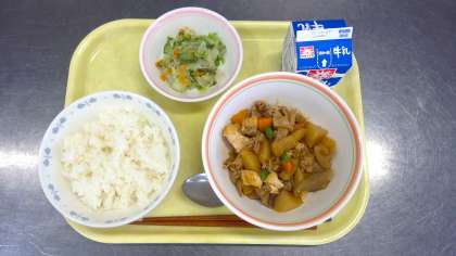 今日の炒め物はピリ辛です。辛さの具合を給食後 生徒に聞いたところ、