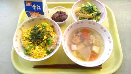 今日の塩豚汁はおいしいと人気で、レシピを聞きに来てくれた生徒もいました。