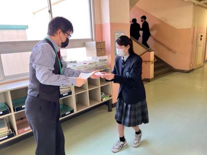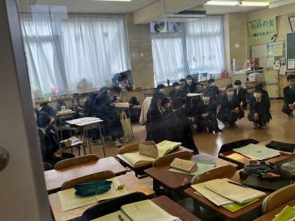 本日は、不審者侵入を想定した避難訓練を実施しました。各クラスでバリケードを作ったり、教室中央に集まるなどの練習をして、教員も南門に駆けつけて校内に入れない対応をするなどの訓練をしました。本校では、今年度防犯カメラを新たにし、万が一不審者が現れた場合にも、より鮮明にしっかり記録するようにカメラの角度まで工夫をしています。不審者の侵入は絶対あってはならないことですが、生徒の皆さんも本日の訓練のように、・廊下側の生徒が鍵を閉める ・協力してバリケードをつくる ・助けが来るまで時間を稼ぐ等を忘れず、安全な学校生活を送ることができるようにしましょう。 校長