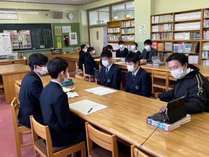 本日は土曜授業です。受験体験記として、3年生の代表生徒がトーク形式で、自分の進路決定の過程について、2年生の各教室にオンライン配信しました。なぜその志望校を選んだのか、面接で聞かれたことは、スポーツ推薦はどのように行われたか等、とても丁寧に3年生が語ってくれました。2年生も大変参考になったのではないでしょうか。3年生代表生徒の皆さん、ありがとうございました。 校長