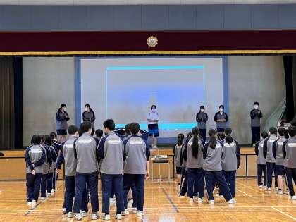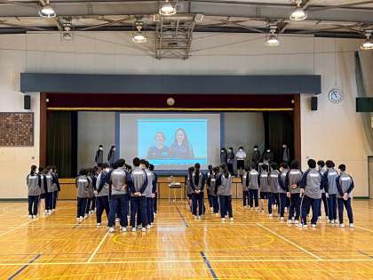 本日、渋谷区に拠点を置くBリーグバスケットボールチーム「アルバルク東京」の出前授業を3年生が受けました。アルバルク東京に所属するチアリーダーから提供いただいたダンス動画をお手本に、各クラスから選抜されたダンスリーダーが踊ってくれた後、みんなで練習しました。本来ならば直接来校していただき、直接指導していただける予定でしたが、一生懸命みんなで踊り、楽しい時間になりました。