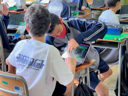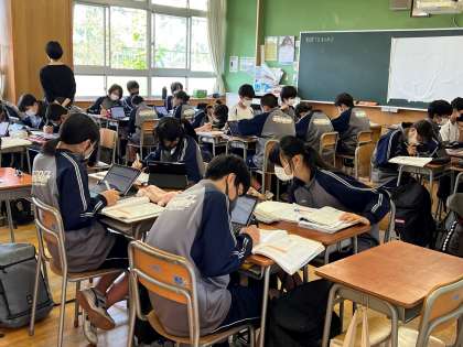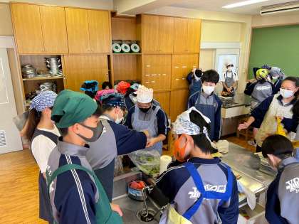 本日の授業の様子です。上から3年4組家庭、2年2組理科、1年1・2組英語の様子です。3年生はコロナの影響でできなかった待望の調理実習で梅ジュースを作っていました。2年生はタブレットを使用して、前回の実験のまとめに取り組み、1年生はアルファベットを使った単語づくりゲームに楽しそうに取り組んでいました。