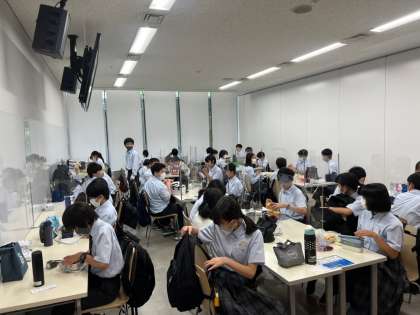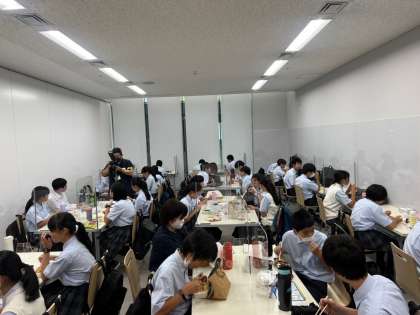 1年生校外学習、日本科学未来館に移動し現在昼食中です。全員元気に活動しています。