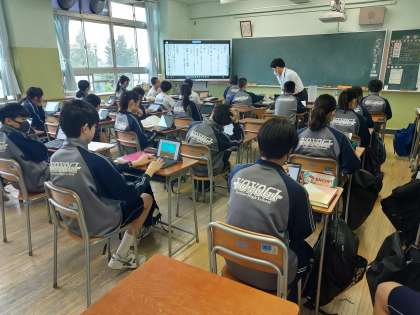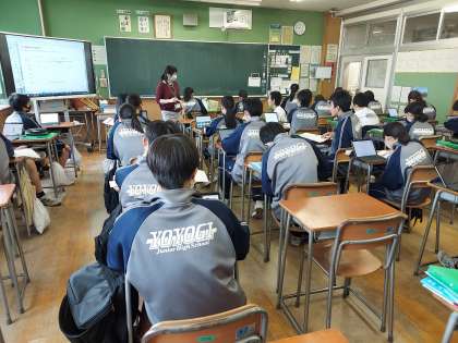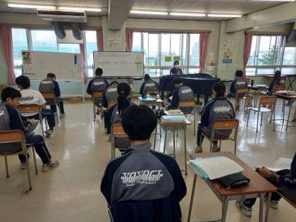 本日は4時間の土曜授業日です。あいにくの天候ですが、朝早くから保護者の皆さまが参観してくださいました。ありがとうございます。写真は3年生の音楽と国語、2年生の英語の様子です。午後2時からは部活動の保護者会があります。重ねてよろしくお願いいたします。