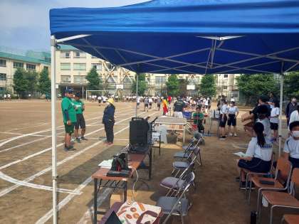 昨日から延期になっていた体育祭予行を本日実施いたします。とても暑いので熱中症に十分注意して実施いたします。