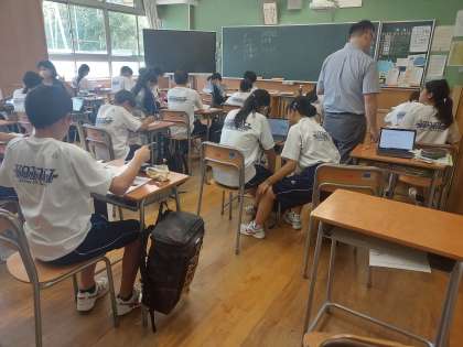 写真は1年生の保健体育と理科の授業です。保健体育は「身体の発育、発達」、理科は、「いろいろな生物の分類」を学んでいました。