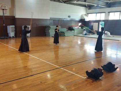 爽やかな掛け声のもと、素振りの練習をしていました。今日も暑くなったので、くれぐれも熱中症には気を付けてくださいね。