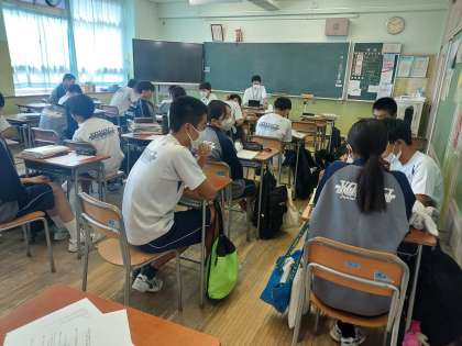 2時間目の3年生、数学少人数授業の様子です。明日から金曜日まで第2回定期考査となります。全力を尽くしてください。様々な質問を先生にしていました。