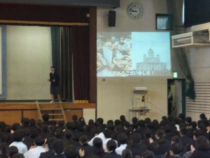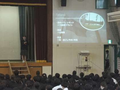 本日の朝礼では、夏季休業中にフィンランド派遣研修に参加した2年生に学校での報告をしてもらいました。渋谷区の報告会では小学生と一緒にスピーチしていたため、学校報告会用にわざわざプレゼンを作成して報告してくれました。充実した研修の様子がよく分かる素敵な発表でした。ありがとうございました。