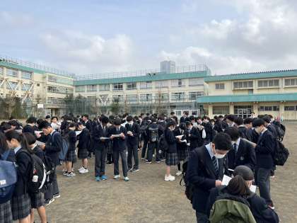 新しいクラスを確認したあとは、大体育館に集合です。着任式と始業式です。