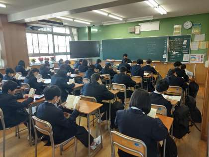 昨日の天候が嘘のように、今日は朝から素晴らしい天気ですね。1年生も元気に登校し、既に朝読者に励んでいました。