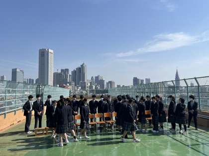 本日の1時間目と2時間目は、進級写真の撮影を本校屋上にて行いました。撮影準備と屋上からの様子です。屋上から新宿方面を写しました。素晴らしい眺めです。