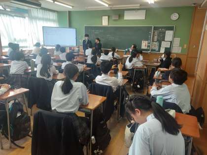 6時間目の2年生の授業は、学活でした。学級目標と体育祭のスローガンを決めていました。和気あいあいと様々な意見が飛び交っていました。